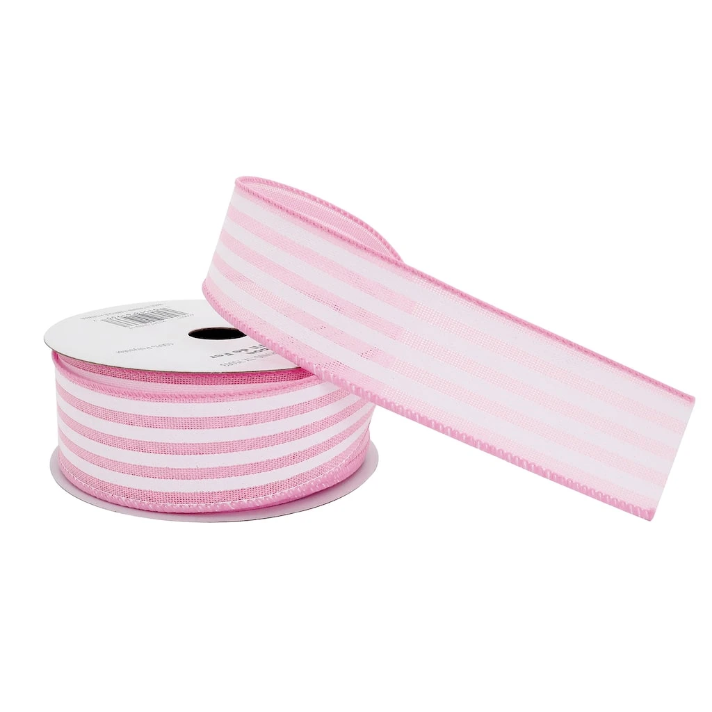 Perfect for embellishing décor items, gift wrap, treats, gift baskets and more! This faux linen ribbon has a beautiful striped pattern.