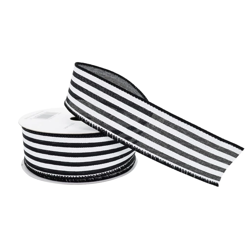 Add this wired ribbon to your gift wrapping and DIY décor projects. This faux linen with a striped pattern will add a lovely texture to your finished decorative piece.