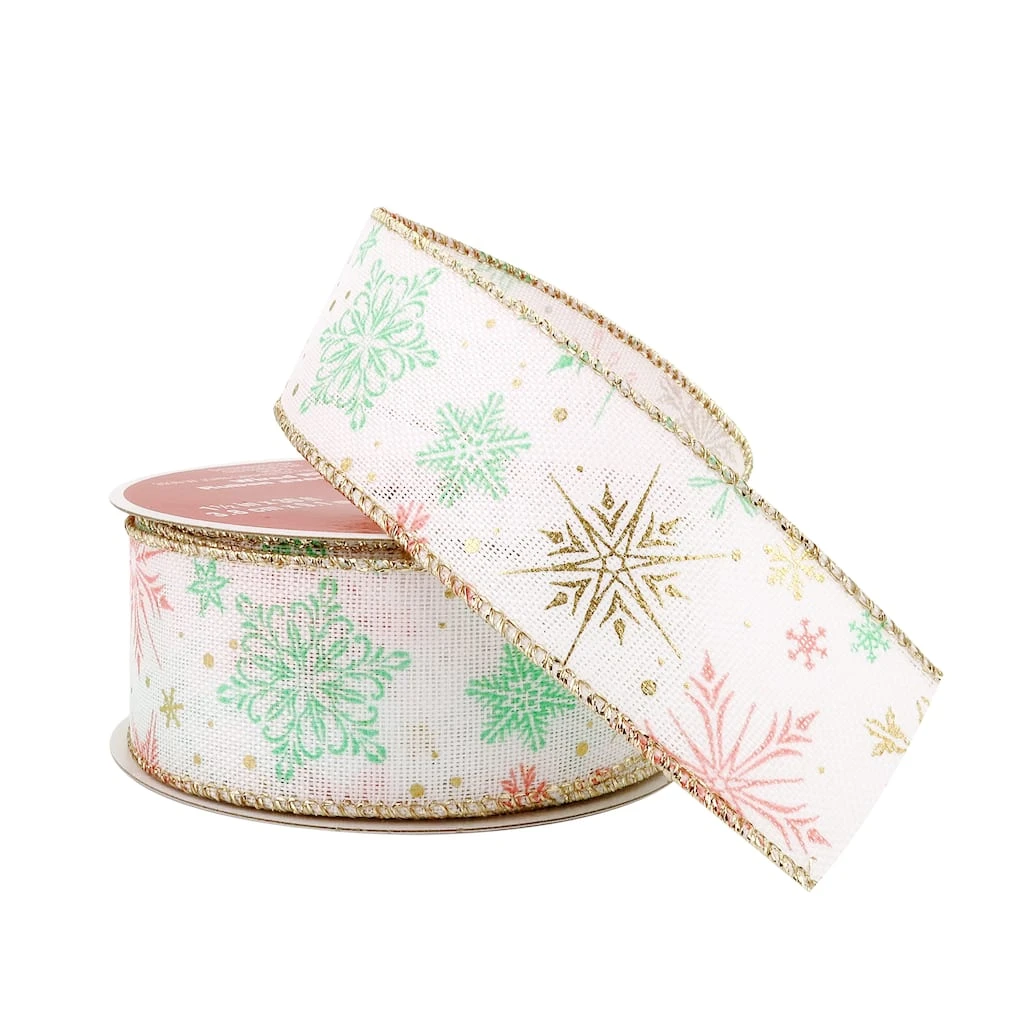 Give your Christmas gifts and craft projects a lovely bit of sparkle and shine with this taffeta foil snowflake ribbon from Celebrate It. Use to embellish ornaments, pair with lights and greenery to create festive garlands and wreaths, dress up floral arrangements, put the finishing touch on presents and more!