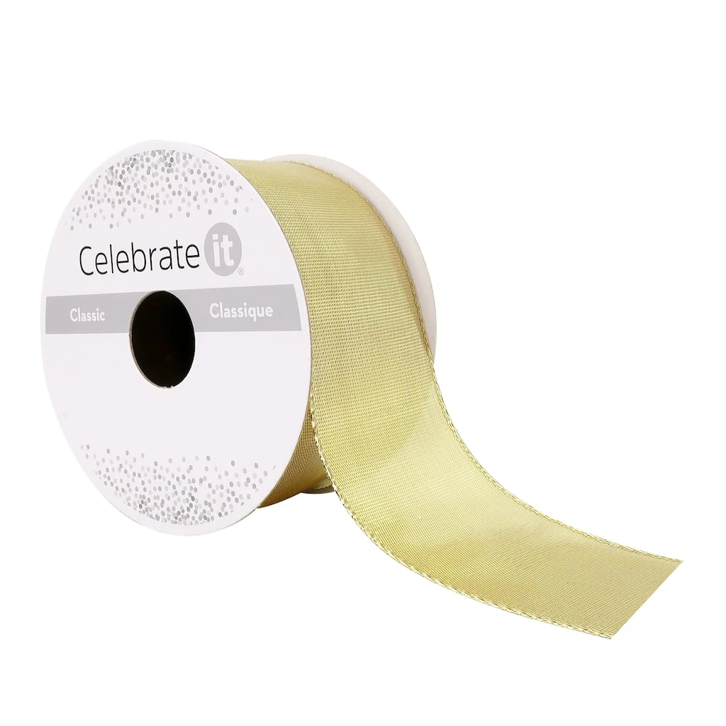 Give your gifts and crafts a fun touch of charm with this wired gold ribbon with a lovely metallic sheen from Celebrate It. Use to craft festive wreaths and garlands, add bows and other embellishments to apparel projects or put the finishing touch on a present for someone special.