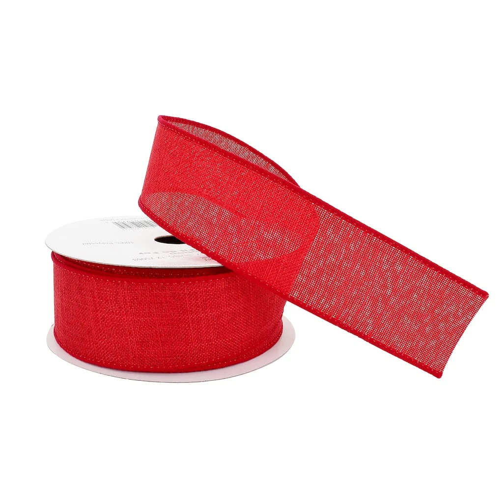 Perfect for embellishing décor items, gift wrap, treats, gift baskets and more! This faux linen ribbon has a beautiful red color.