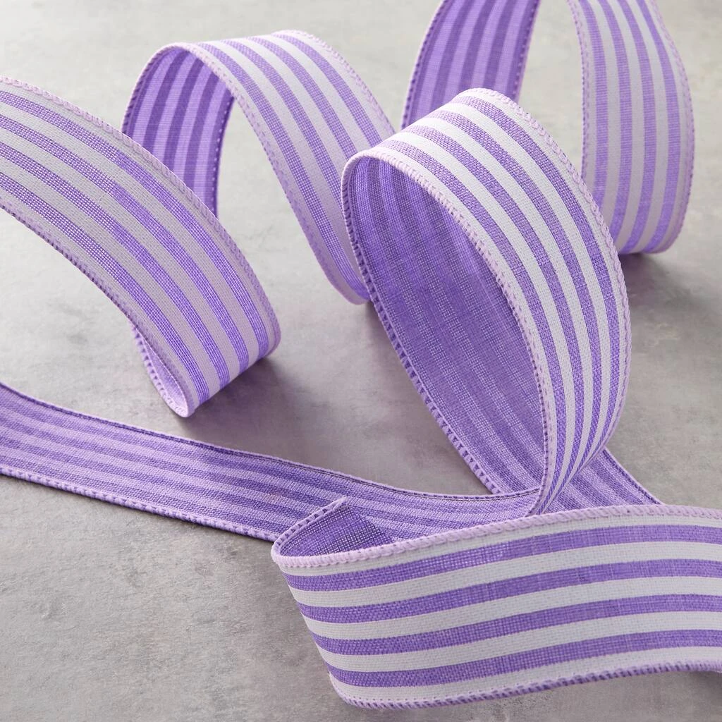 Add this wired ribbon to your gift wrapping and DIY décor projects. This faux linen with a striped pattern will add a lovely texture to your finished decorative piece.