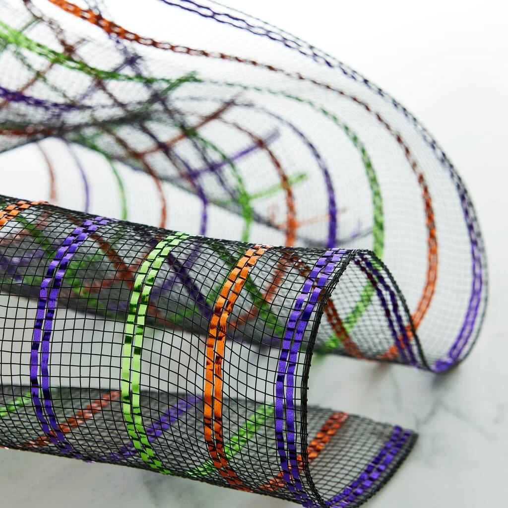 This orange, purple, green and black mesh is perfect to beautify your handmade wreath. You can team this mesh with foam shapes, stuffed figurines and glittered accents for added charm.