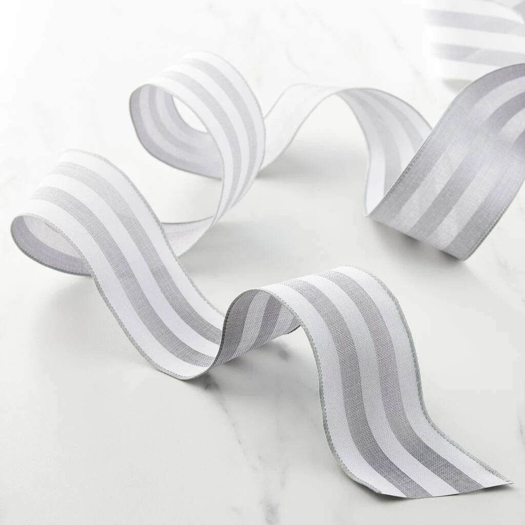 Add this wired ribbon to your gift wrapping and DIY décor projects. This faux linen with a striped pattern will add a lovely texture to your finished decorative piece.