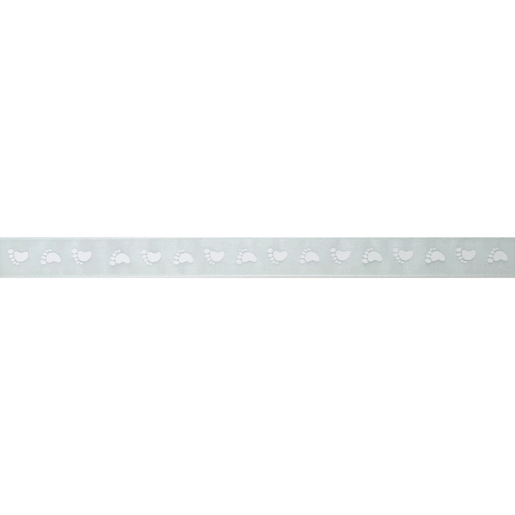 Give your gifts and crafts a fun touch of charm with this blue sheer ribbon with a baby foot pattern from Celebrate It. Use to craft seasonal wreaths and garlands, add bows and other embellishments to apparel projects or put the finishing touch on a present for someone special.