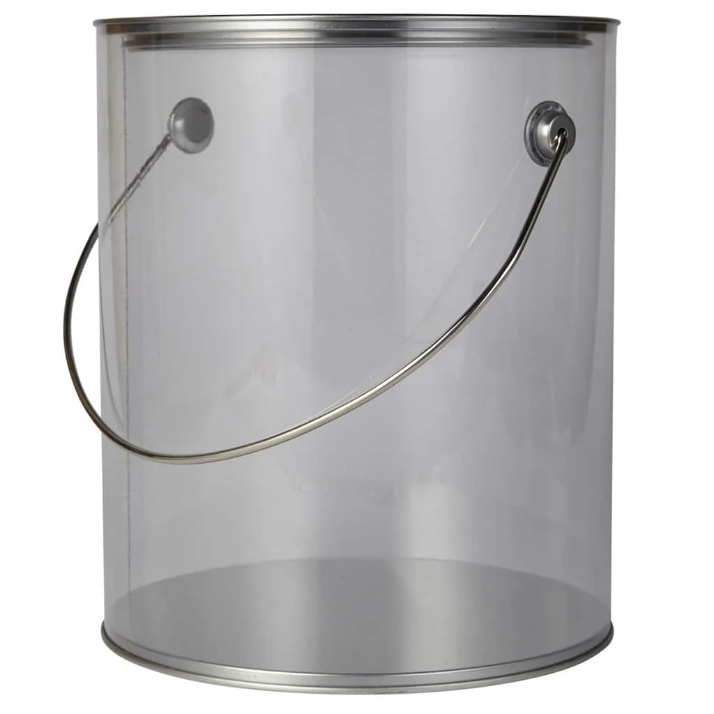 This pail is a wonderful, unique way to give a gift! Create a lovely keepsake by embellishing the clear paint-can style pail, add your gift and fill with tissue. The metal handle makes it easy to grab and go.