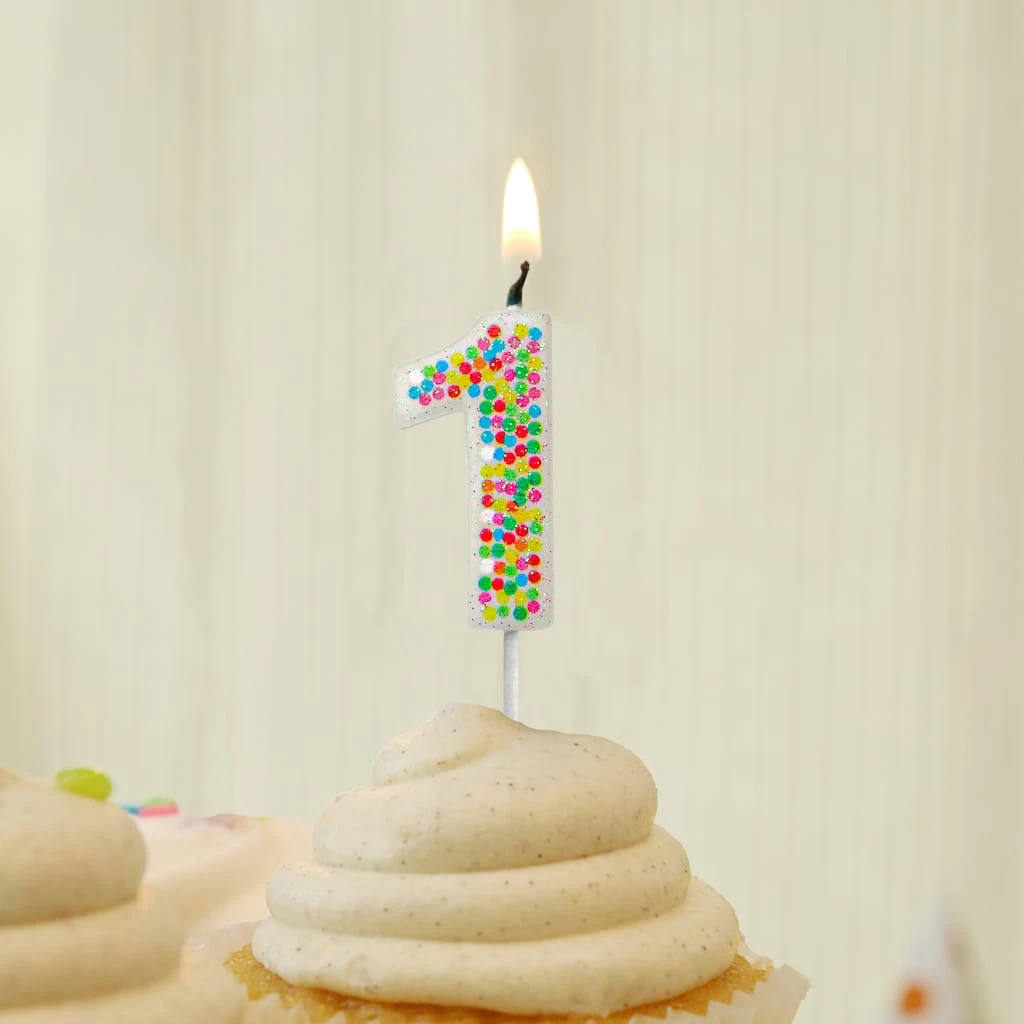 Add a colorful design to your birthday cake with this confetti number birthday candle by Celebrate It. This candle is great to use for how old the birthday boy or girl is turning. Coordinate this candle with other cake toppers and decorations to complete your party theme.