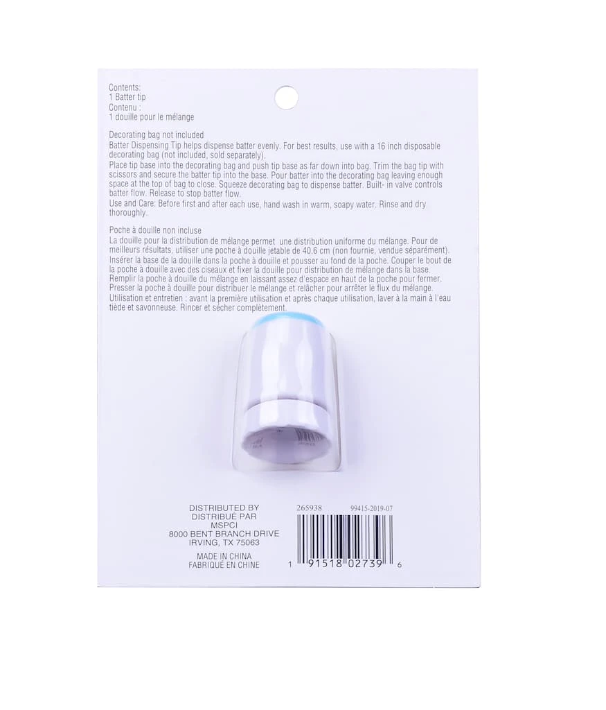 Easily fill your baking cups and pan cavities with no drips or mess. Built-in valve controls batter flow for uniform filling, so you get great-looking cupcakes and cakes every time.
