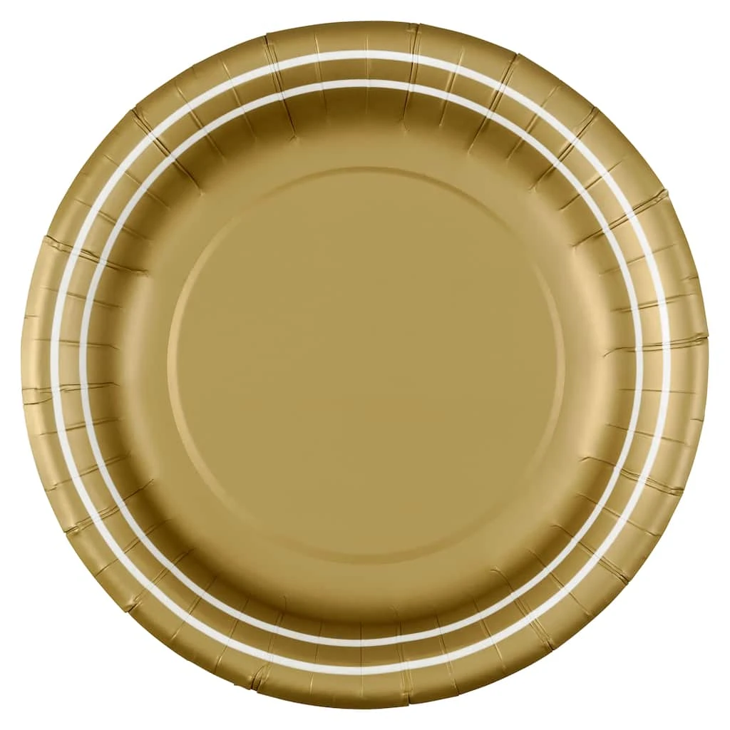 Add a dash of elegance to your party dΓ©cor with these gold-colored plates by Celebrate It. Use them with coordinating paper napkins and cups for a summer party or an outdoor event.