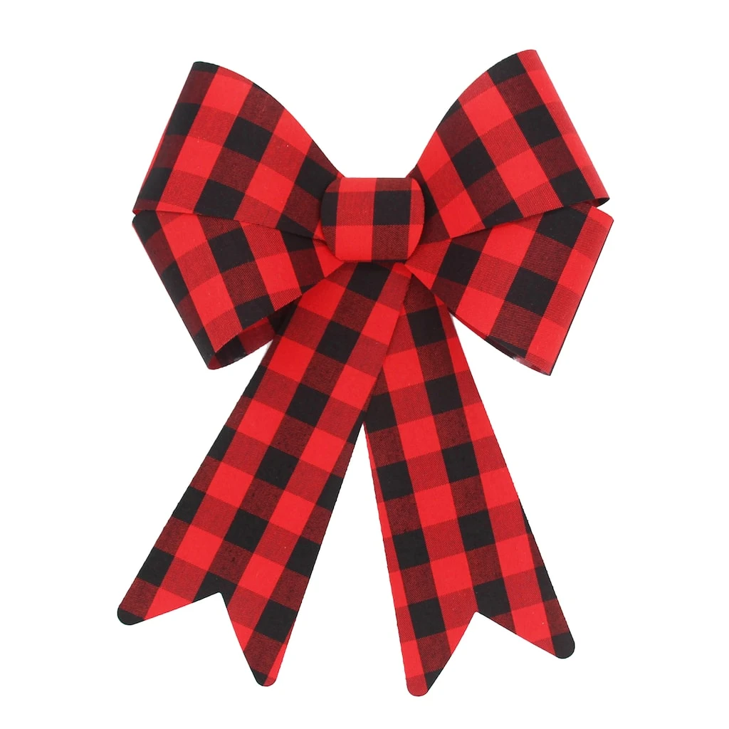 Give your holiday gifts and craft projects a lovely bit of country Christmas charm with this red and black checkered bow. Featuring fabric coated in PVC for durability, this charming bow is ideal for pairing with lights and greenery to create a festive garland or wreath, dressing up your tree, putting the finishing touch on a special present and more!