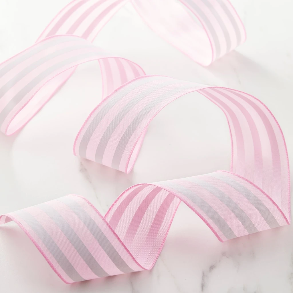 Perfect for embellishing dΓ©cor items, gift wrap, treats, gift baskets and more! This faux linen ribbon has a pink and white striped pattern.