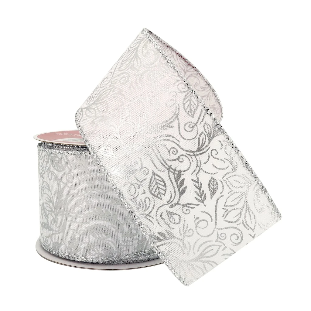 Give your Christmas gifts and craft projects a lovely bit of sparkle and shine with this silver foil faux linen ribbon from Celebrate It. Use to embellish ornaments, pair with lights and greenery to create festive garlands and wreaths, dress up floral arrangements, put the finishing touch on presents and more!