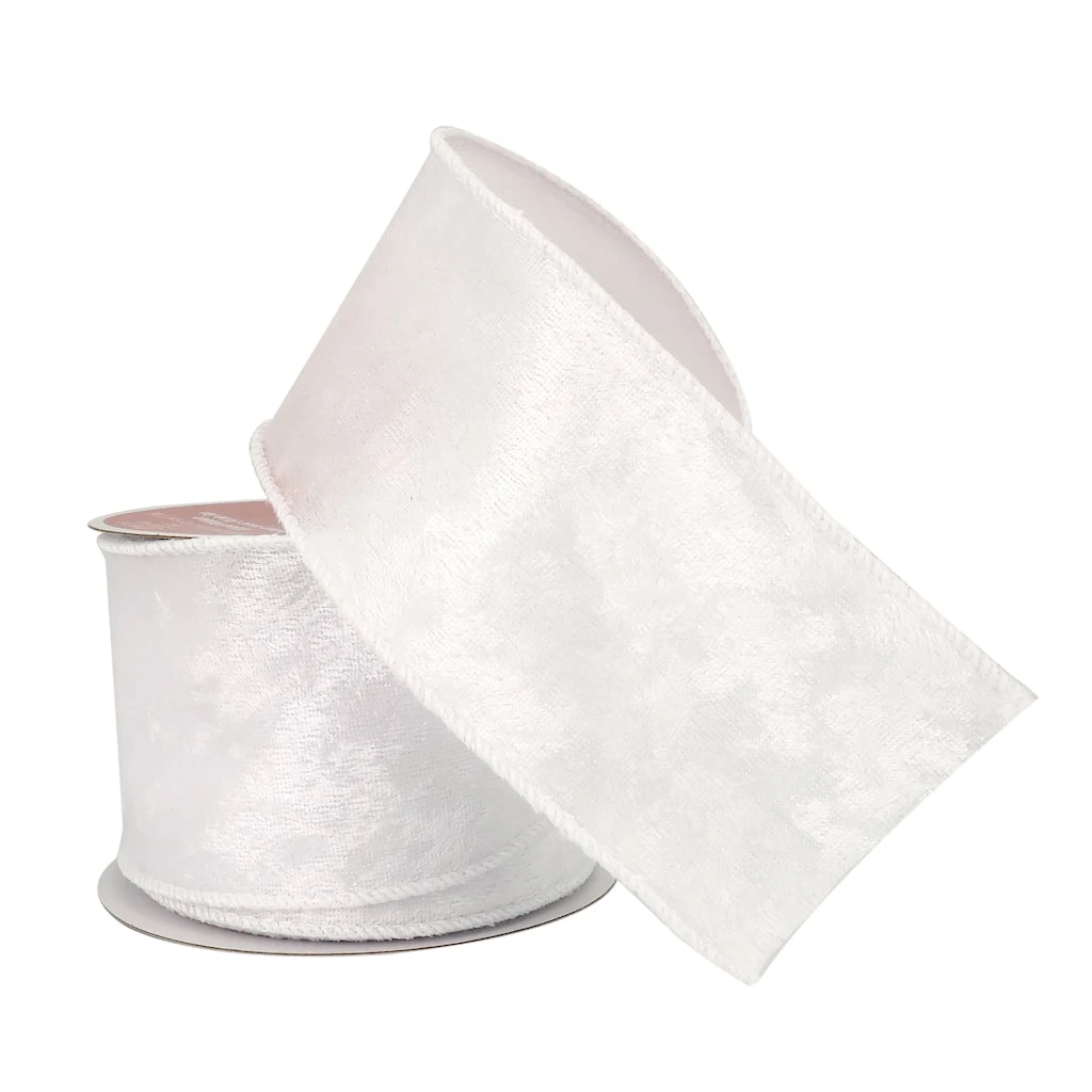 Give your Christmas gifts and craft projects a lovely bit of sparkle and shine with this white velvet ribbon from Celebrate It. Use to embellish ornaments, pair with lights and greenery to create festive garlands and wreaths, dress up floral arrangements, put the finishing touch on presents and more!