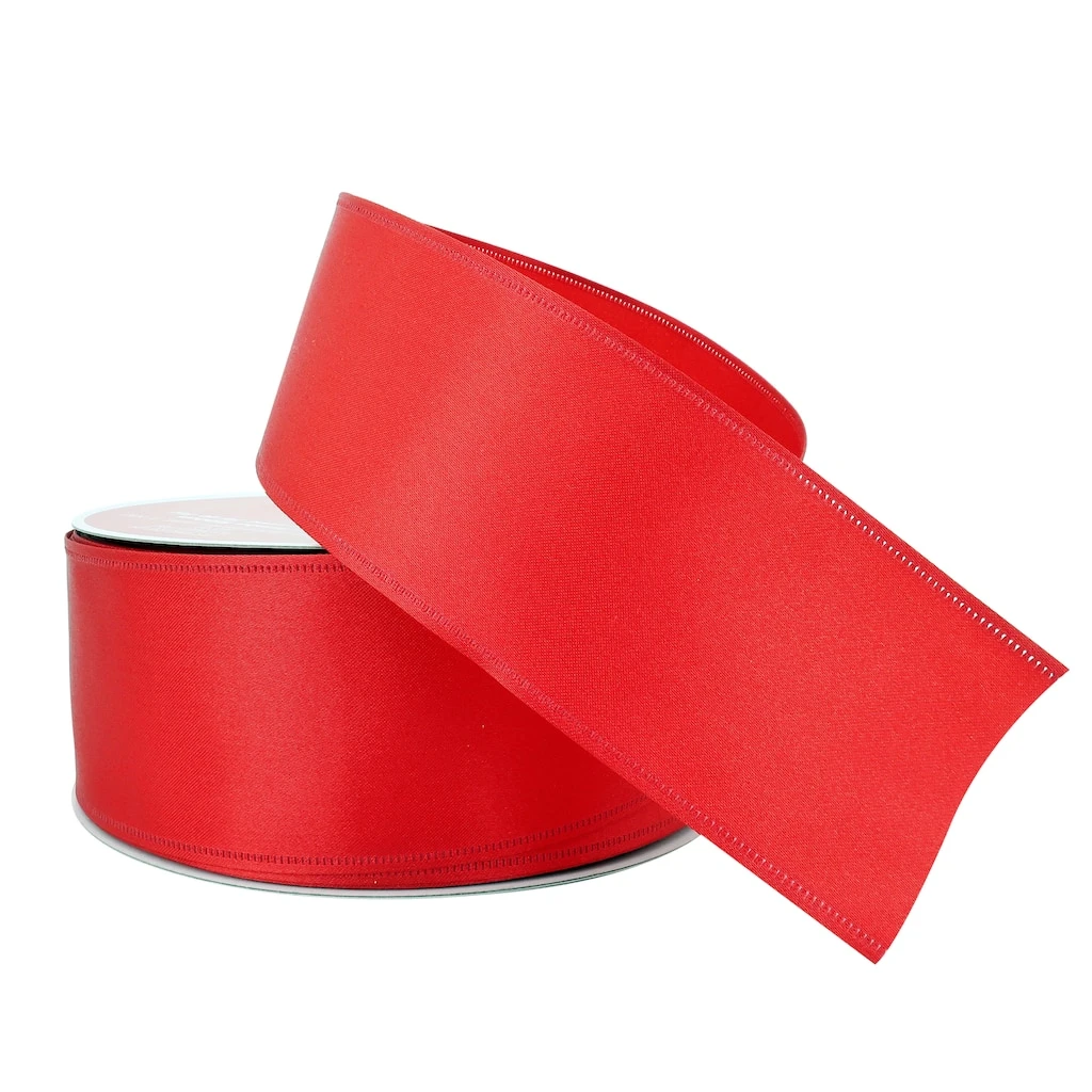 Give your Christmas gifts and craft projects a lovely bit of holiday charm with this wired red satin ribbon from Celebrate It. Use to embellish ornaments, pair with lights and greenery to create festive garlands and wreaths, dress up floral arrangements, put the finishing touch on presents and more!
