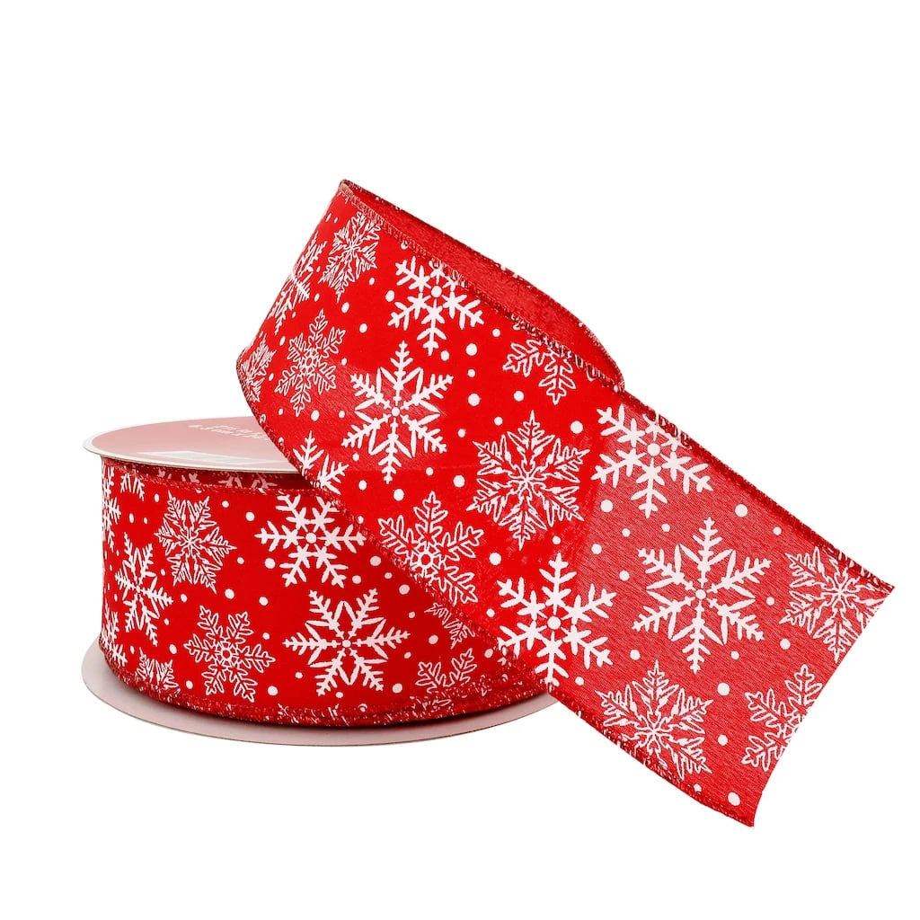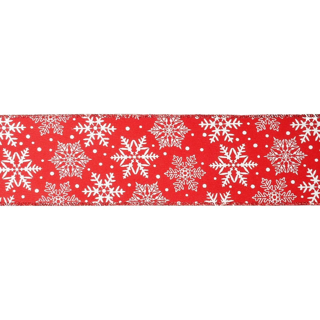 Give your Christmas gifts and craft projects a lovely bit of holiday charm with this wired red taffeta ribbon with a snowflake pattern from Celebrate It. Use to embellish ornaments, pair with lights and greenery to create festive garlands and wreaths, dress up floral arrangements, put the finishing touch on presents and more!