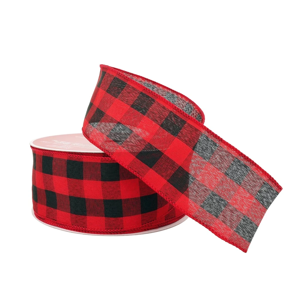 Give your Christmas gifts and craft projects a lovely bit of rustic charm with this wired buffalo check ribbon from Celebrate It. Use to embellish ornaments, pair with lights and greenery to create festive garlands and wreaths, dress up floral arrangements, put the finishing touch on presents and more!