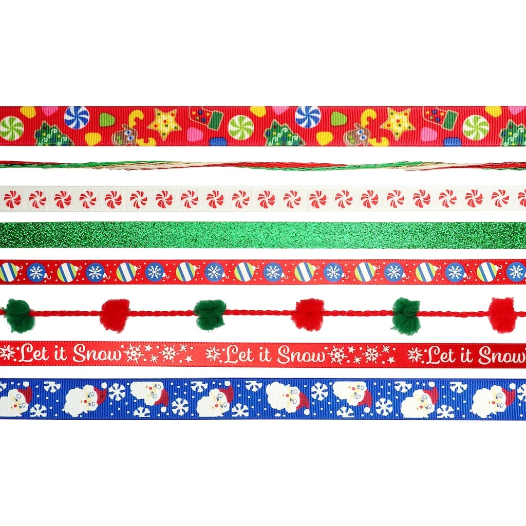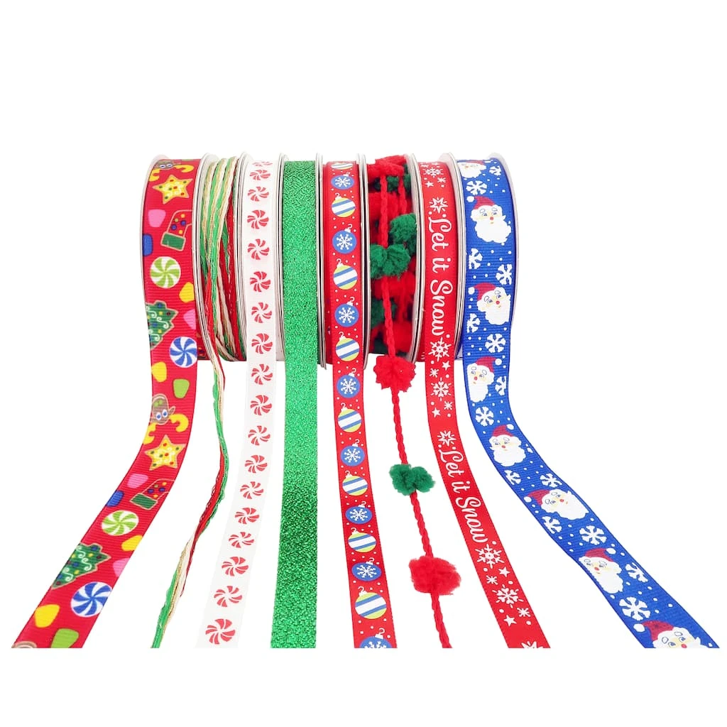 This ribbon pack features a variety of Christmas-themed designs that are perfect for the holiday season. The assortment of designs and colors will be fun to transform gift boxes, goodie bags, and more!