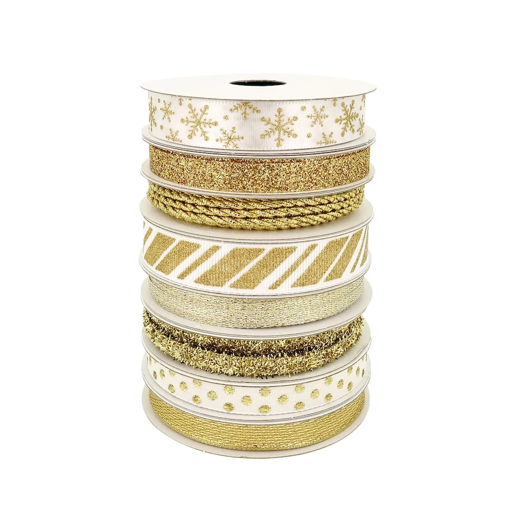 This ribbon pack features a variety of gold Christmas-themed designs. Use it to transform gift boxes, goodie bags, and more!