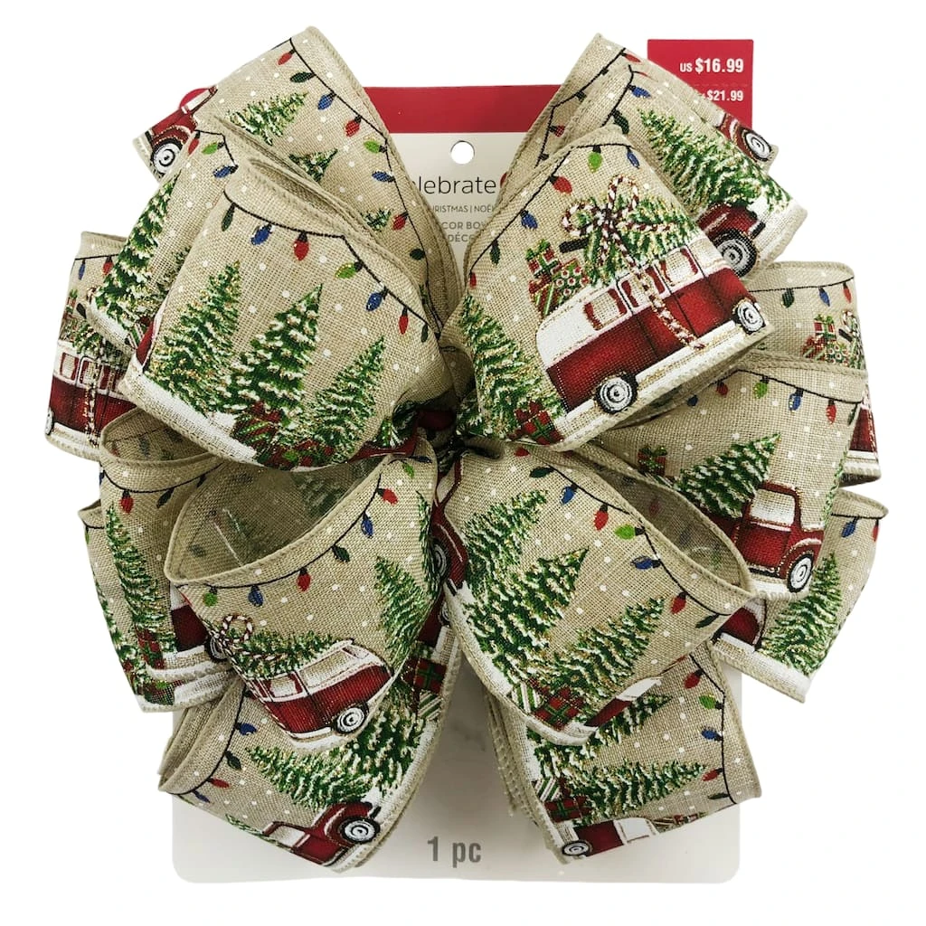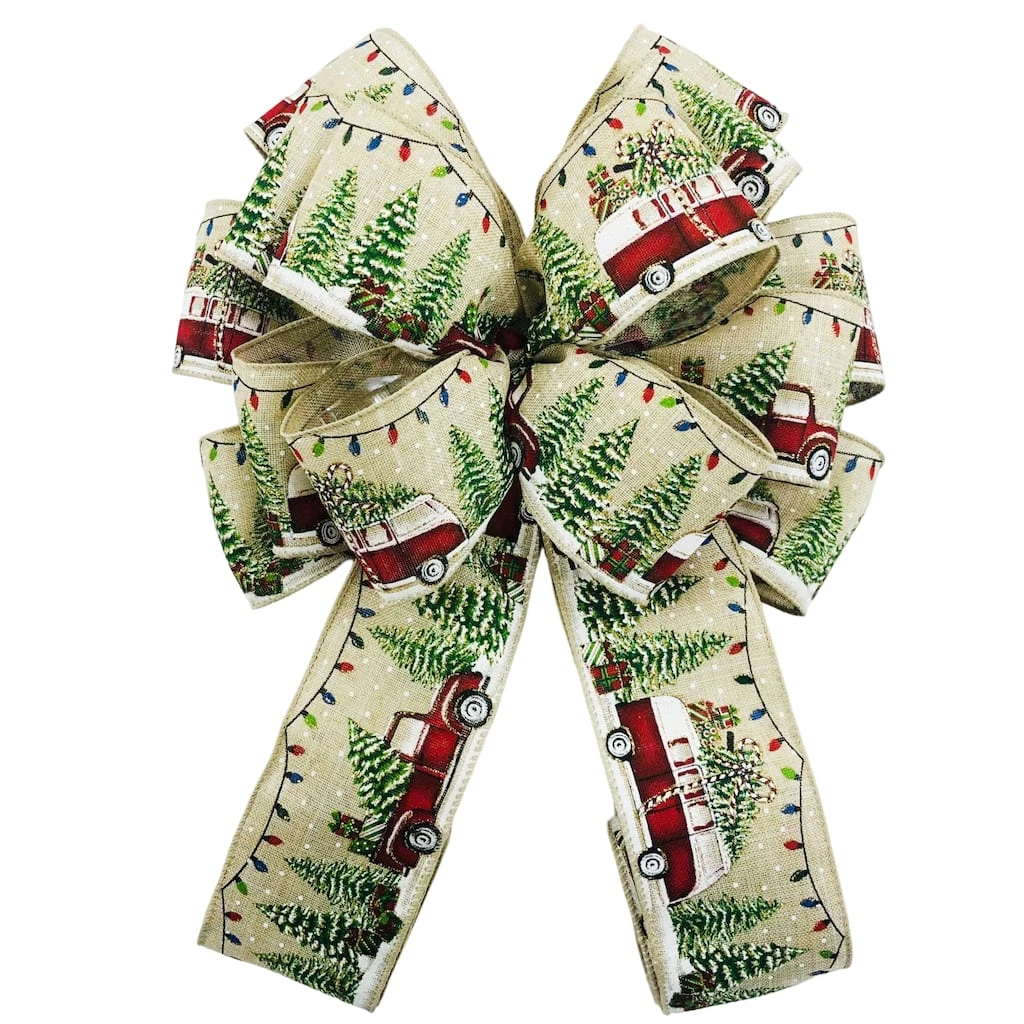 This beautiful holiday tree-themed Christmas bow is perfect for lending your home a festive vibe. Display it on the back of your door for a whimsical holiday touch.