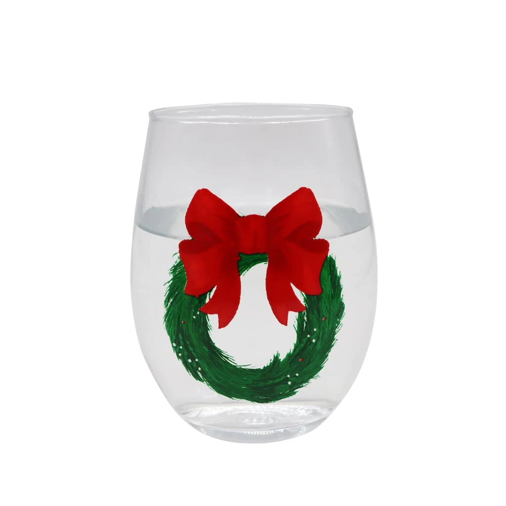This wreath wine glass is perfect for serving up a cold glass of eggnog. Show it off at your next holiday party.