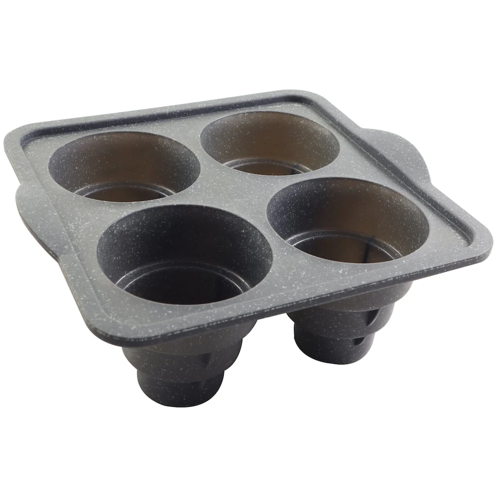 Bake delectable mini tiered cakes with this unique cake pan. It features rigid steel around the outside for secure handling. Additionally, each cavity is comprised of silicone to allow the cakes to pop out with ease!