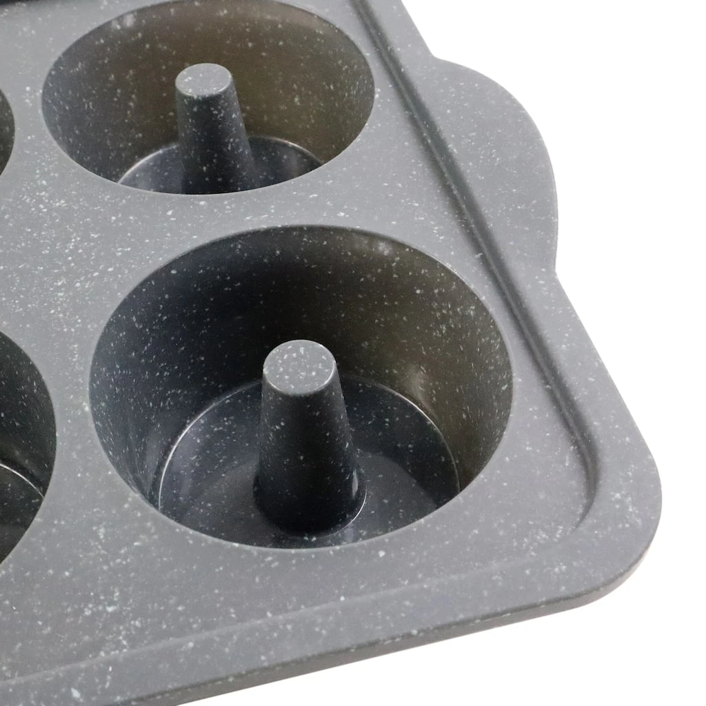 Bake delectable mini angel food cakes with this unique baking pan. It features rigid steel around the outside for secure handling. Additionally, each cake cavity is comprised of silicone to allow cakes to pop out with ease!