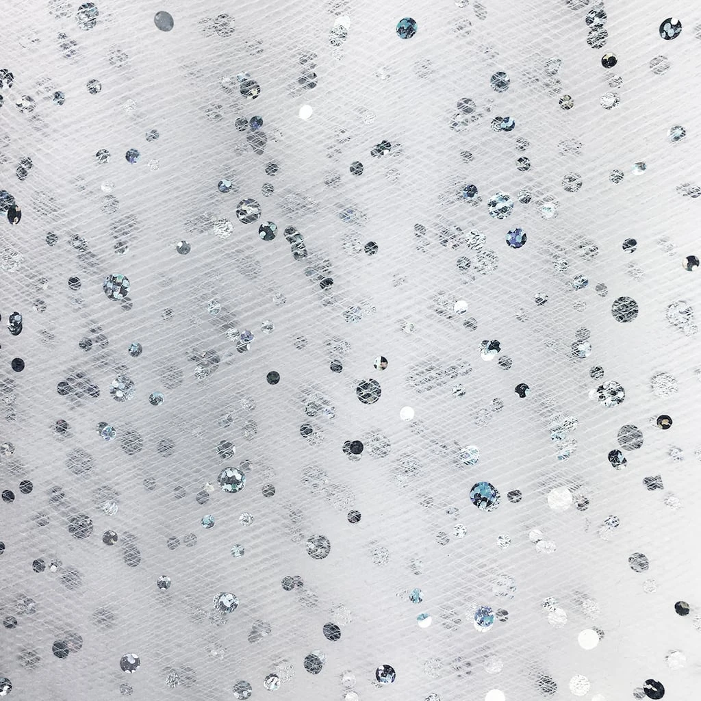 Add this tulle to your DIY décor projects. Perfect for wedding decorative accents or for your crafting needs, this lovely tulle features holographic dots, which brings a stylish touch to the material.