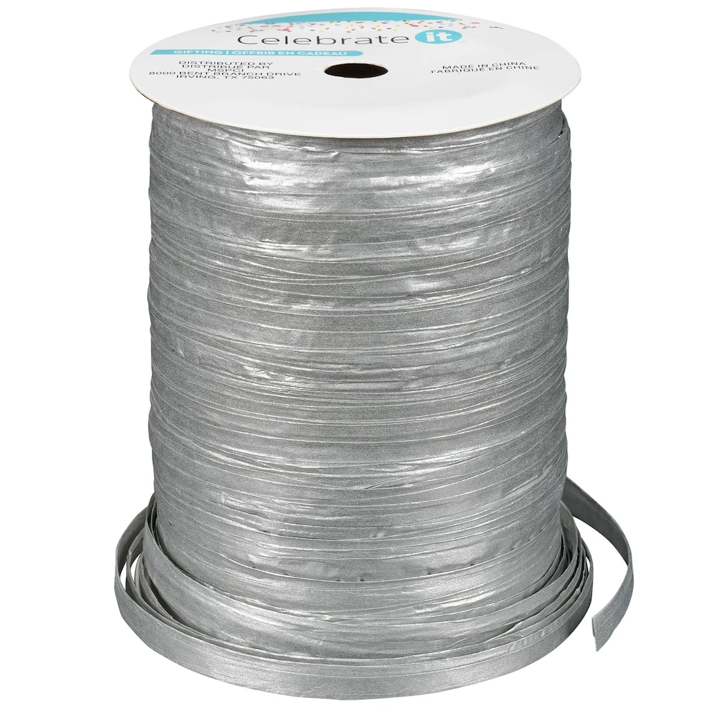 Accentuate your gift baskets, gift wraps, paper bags and other papercraft projects using this silver raffia ribbon by Celebrate It. Use it to make bows, flowers and other decorative knots to instantly beautify your floral bouquets or favor bags.