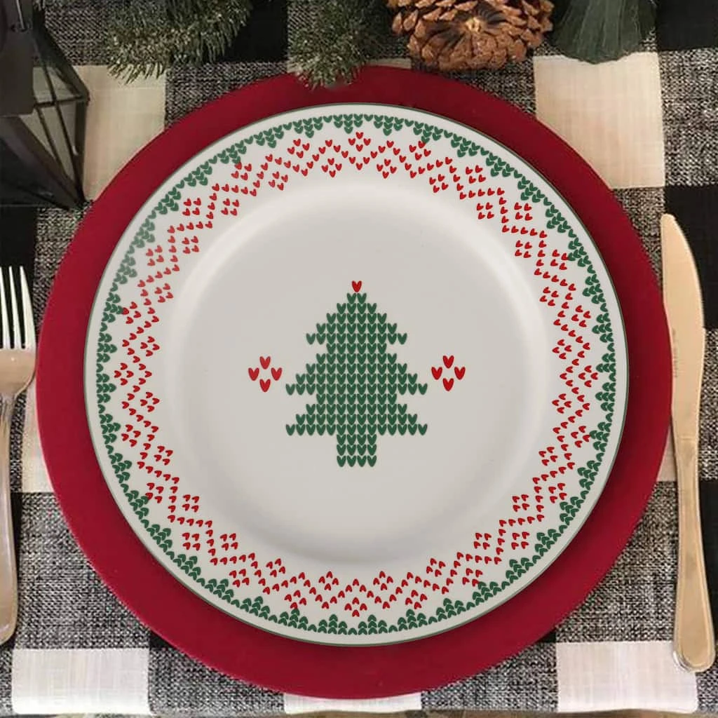 This Christmas tree salad plate is perfect for lending your dining table décor a festive holiday touch. Pair it with a vibrant charger, linen napkins, and elegant flatware to complete the look.