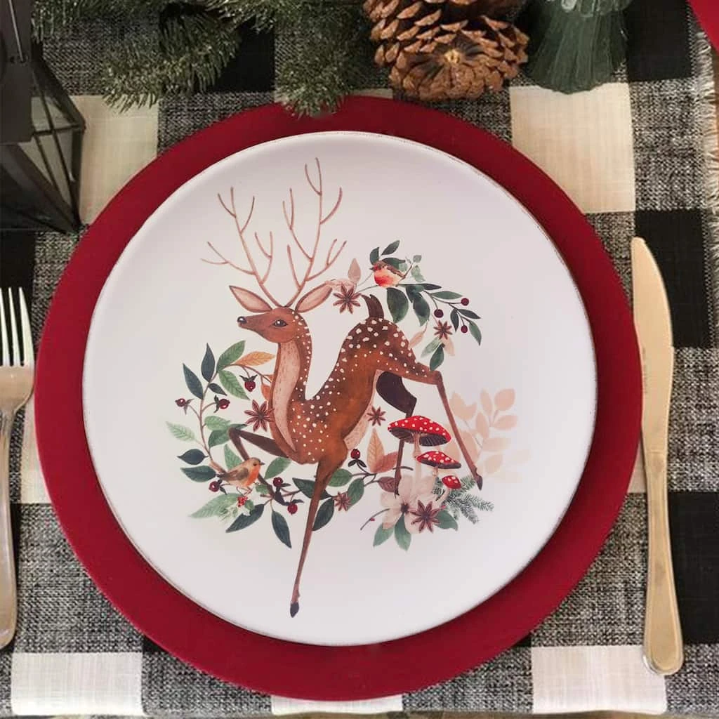 This deer plate is guaranteed to transform your holiday table dΓ©cor. Place it on your table with matching accents for a elegant display.