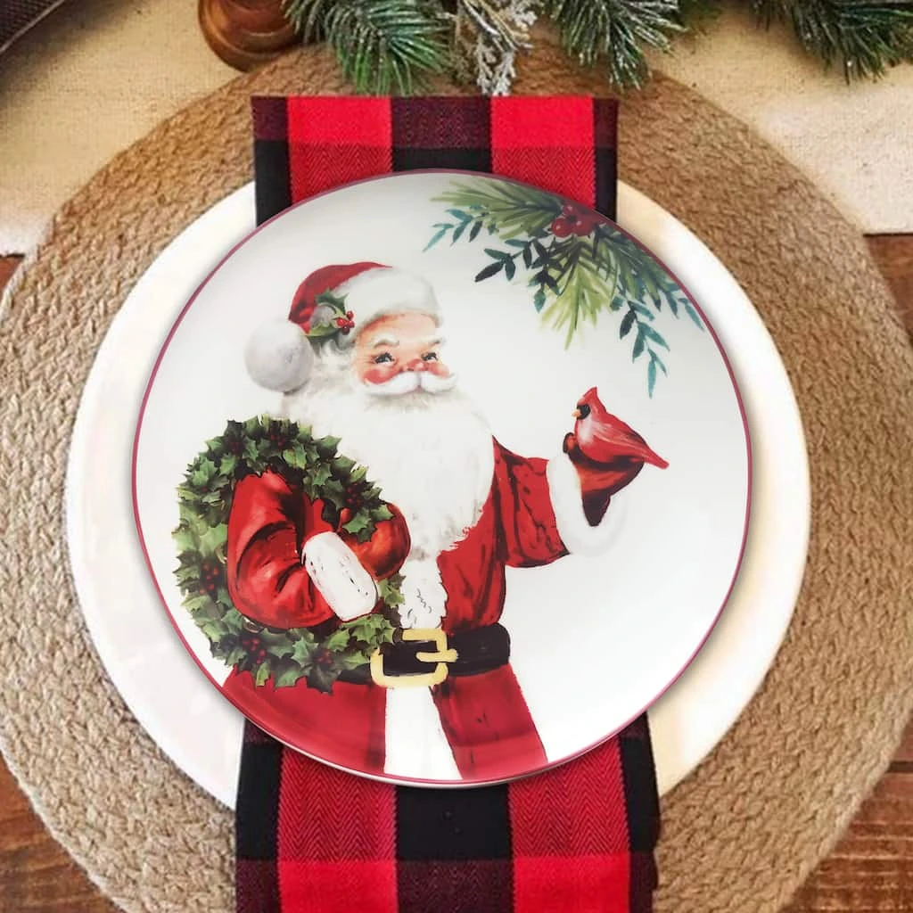 This ceramic Santa Claus plate is perfect for showing off at a holiday dinner party. Pair it with an elegant napkin and silverware for the perfect finishing touch.