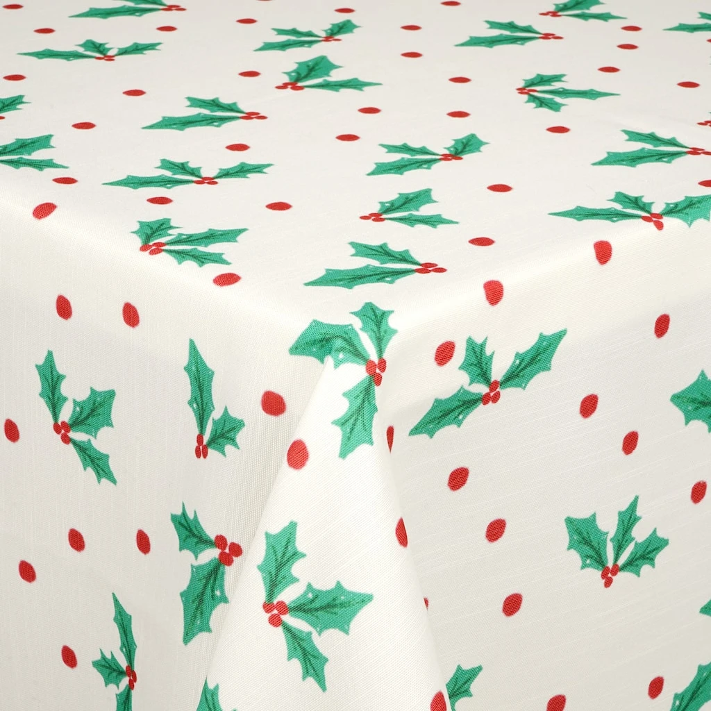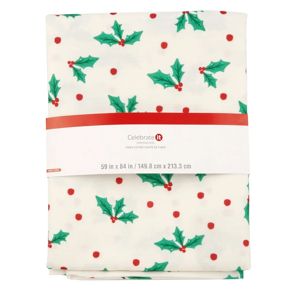 This mistletoe print table cover is perfect for lending your Christmas festivities a vibrant touch. Pair it with a stunning floral arrangement to complete your seasonal display.