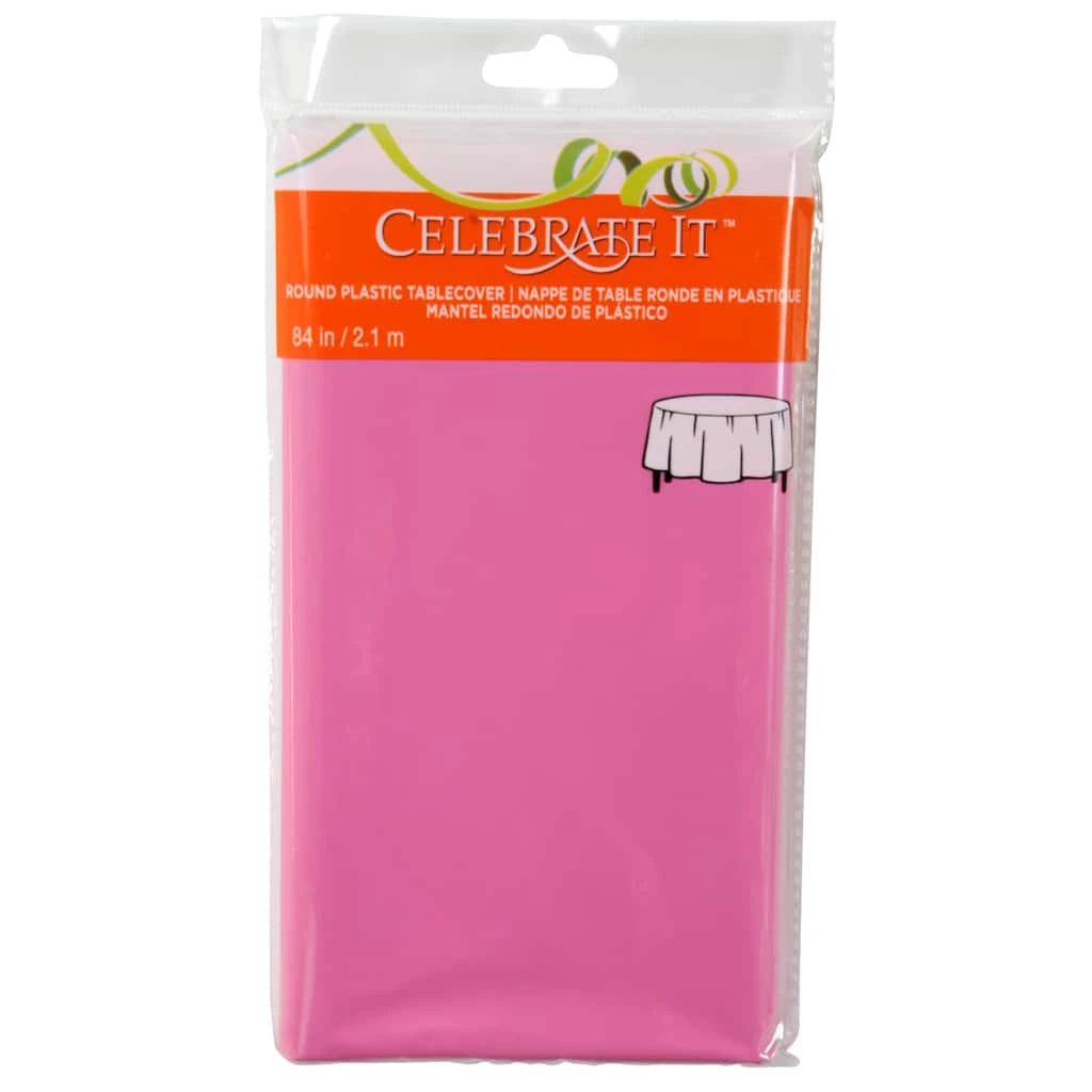 Outlet βοΈ 84″ Round Pink Plastic Table Cover by Celebrate It™ π