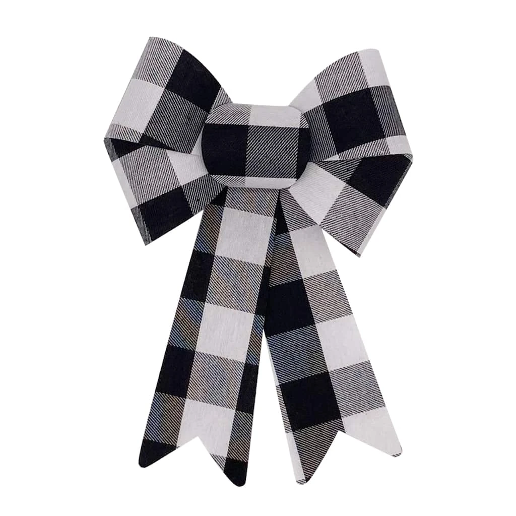 Give your holiday gifts and craft projects a lovely bit of country Christmas charm with this white and black checkered bow. Featuring fabric coated in PVC for durability, this charming bow is ideal for pairing with lights and greenery to create a festive garland or wreath, dressing up your tree, putting the finishing touch on a special present and more!