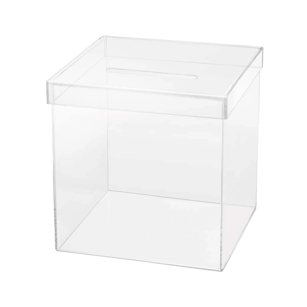 Add this acrylic card box to your special occasion. Place it on a table so your guests can set their thoughtful cards safely inside.