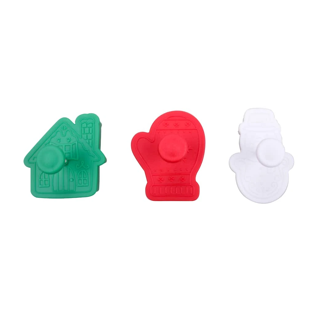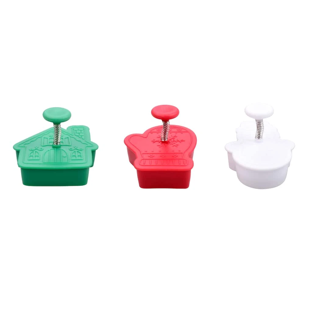 This Christmas cookie stamper is the perfect way to add charm to your holiday treats. You can use sprinkles and frosting to decorate the stamped cookies.