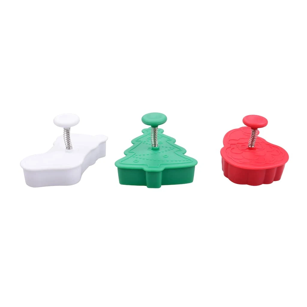 This Christmas cookie stamper is the perfect way to add that festive element to your holiday treats. You can use sprinkles and frosting to decorate the stamped cookies.