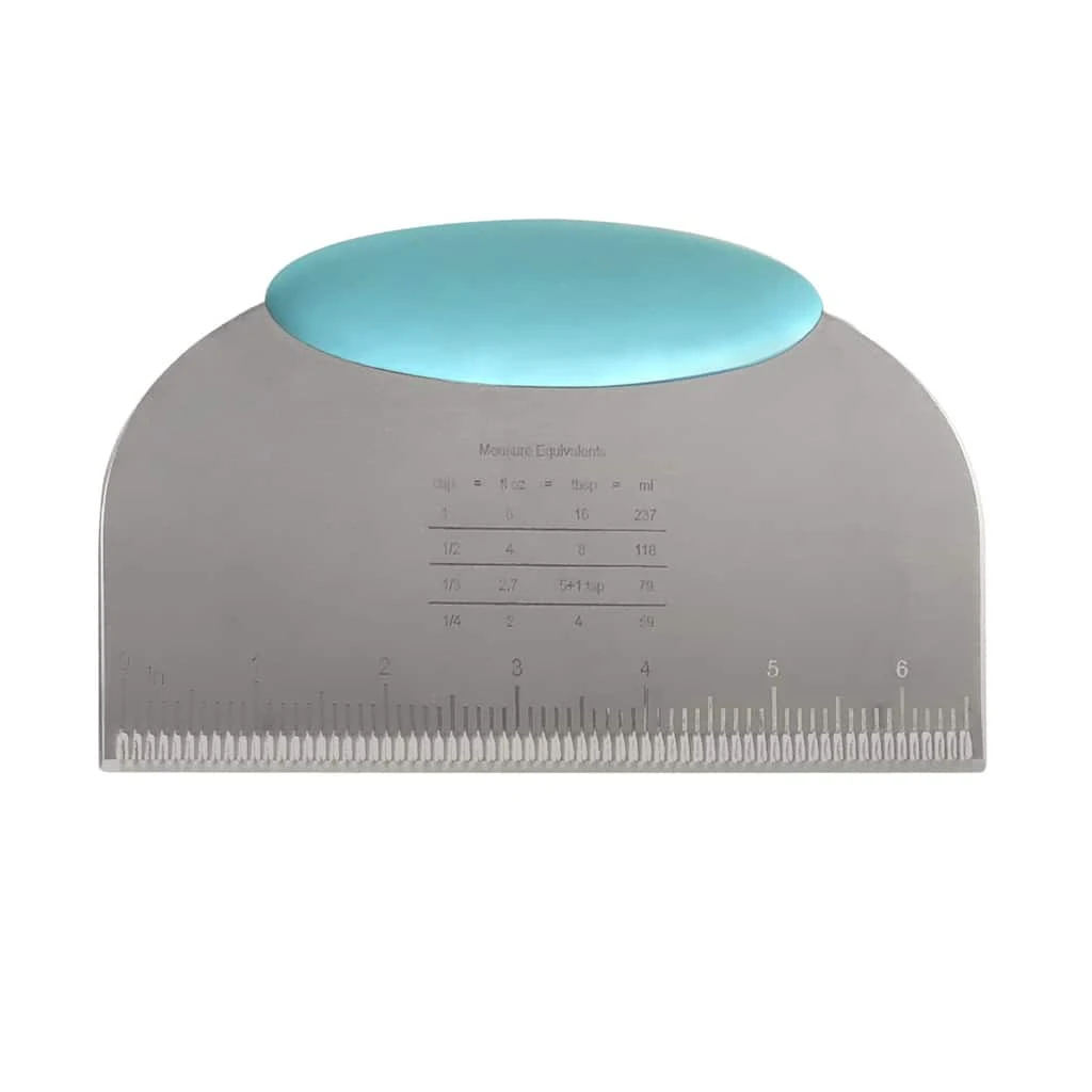 A must-have for any baker to have in the kitchen! You can cut, chop, scrape and scoop all with this convenient tool. The built in measuring guide along the edge is perfect for cutting uniform pieces of dough.
