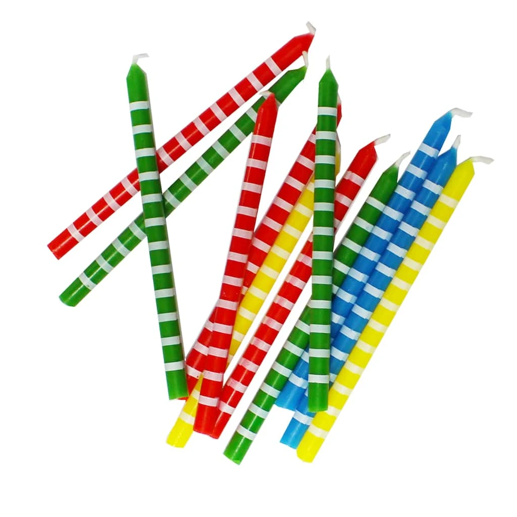 Use these candles to lend a warm, subtle glow to a birthday table setup. These candles sport a striped pattern, and will make a lovely addition to cakes and pies.