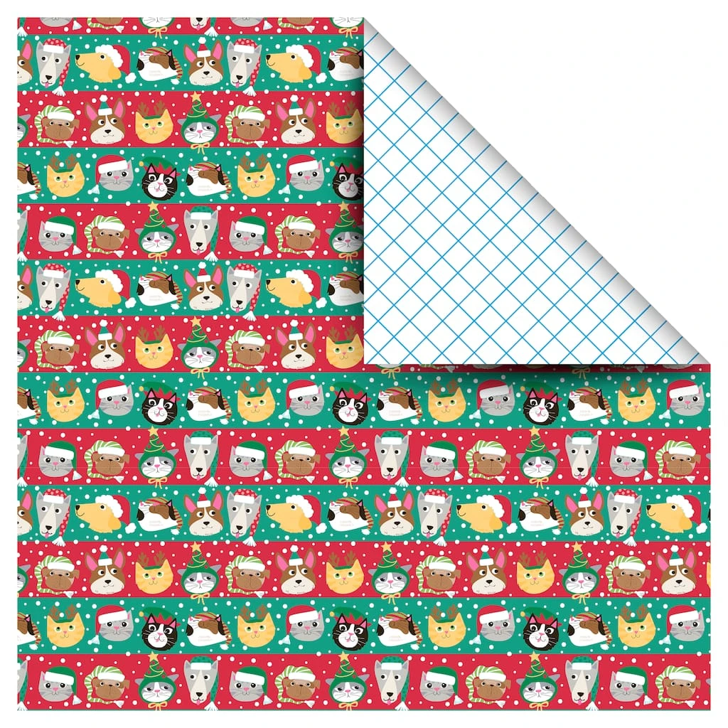 Featuring a fun cats and dogs design, this charming wrapping paper is a fantastic way to dress up your holiday presents with flair. Pair it with shimmery ribbons and bows and add complementary tags for gifts sure to stand out as you celebrate this Christmas season with your loved ones.