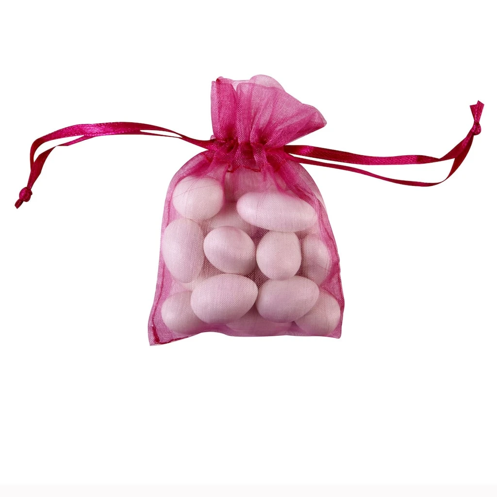 Use these favor bags to create a uniform look for your wedding or party favors and add signature accents to your tables. Organza is a versatile and popular option that comes in a range of different colors. Your mementos are stylishly enhanced yet visible through the sheer fabric.