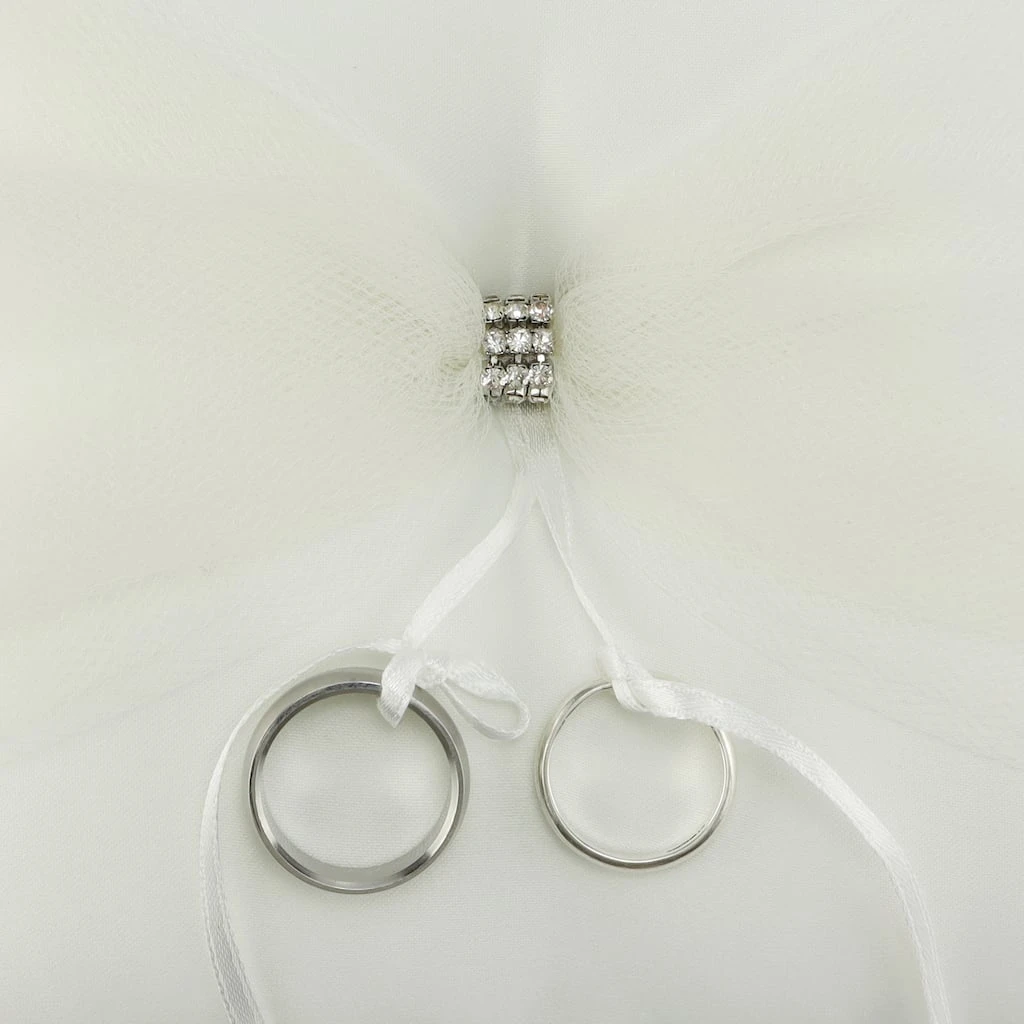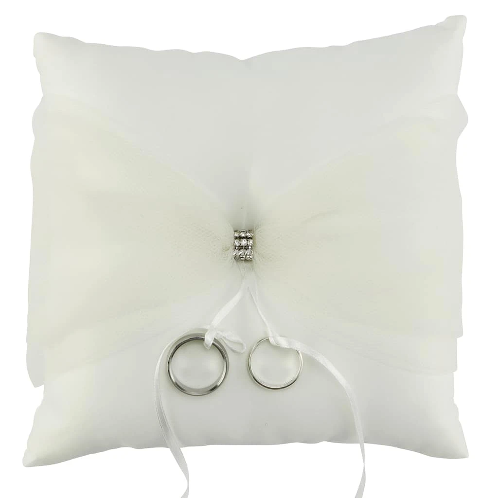 Pretty and elegant, this ring bearer pillow is perfect for a formal wedding. The top has tulle netting that is accented with a sparkling rhinestone decoration. Tie the rings to the pillow with the attached satin ribbon. Pillow matches Celebrate It™ Occasions™ Flower Girl Basket and Celebrate It™ Occasions™ Tulle Guest Book & Pen Set.
