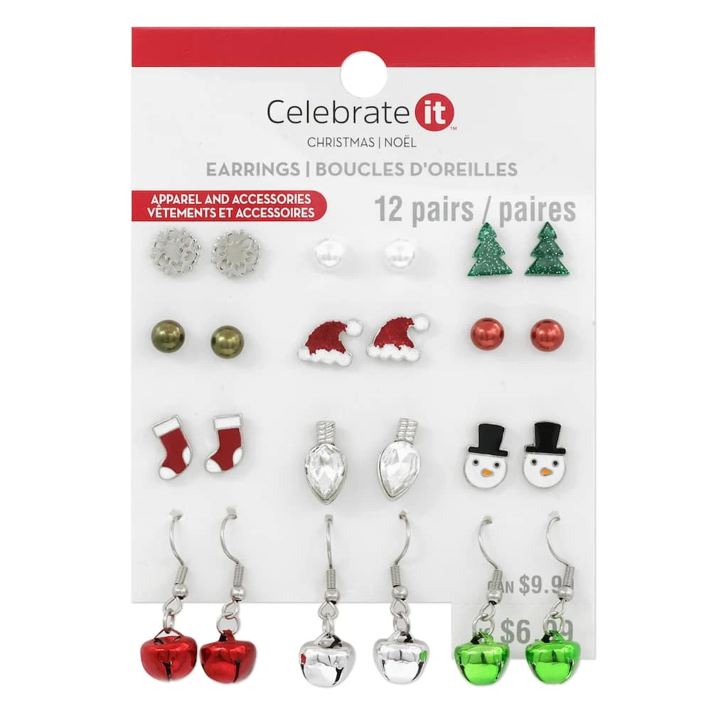 Bring a touch of festive flair to your holiday attire with these darling earrings from Celebrate It. This mix of studs and dangly earrings in classic shapes is a great way to show your Christmas spirit at school, the office and gatherings with friends and family.