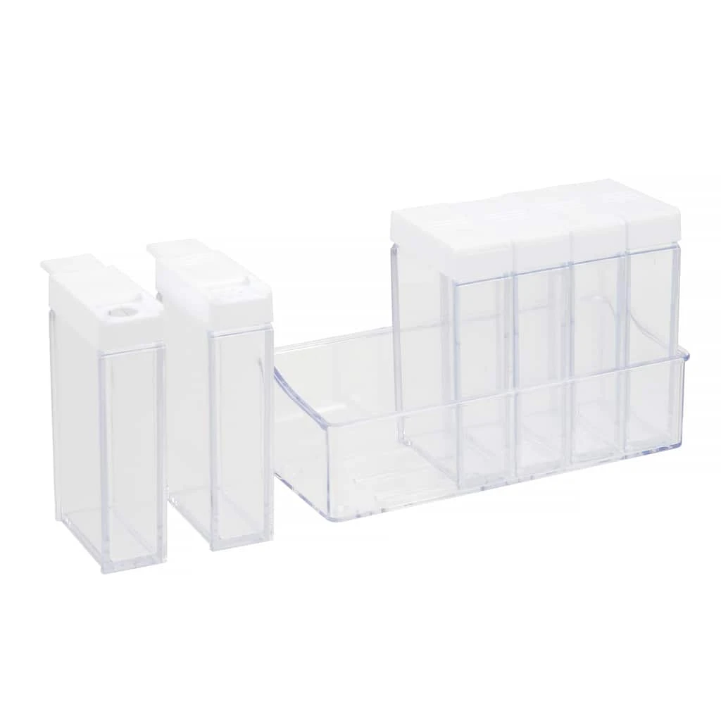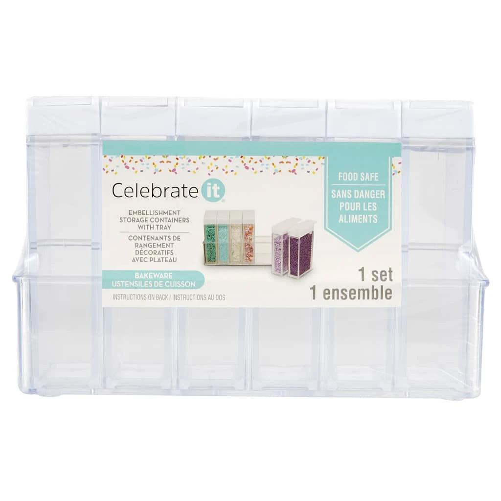 Perfect to organize your pantry, these storage containers are perfect to store your embellishments and sprinkles for baking. Included are 6 clear containers so you can easily see what embellishments you have.