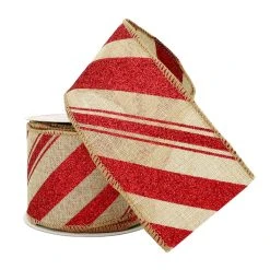 Discount 🛒 2.5″ x 20ft. Faux Linen Wired Stripes Ribbon by Celebrate It™ ❄ Christmas ⭐