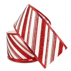Discount 🔔 2.5″ x 20ft. Taffeta Wired Slant Stripes Ribbon by Celebrate It™ Christmas 👏