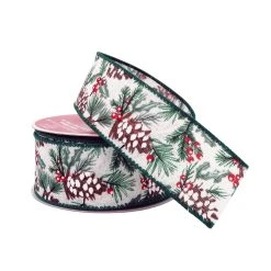 Hot Sale ⌛ 1.5″ x 10yd. Faux Linen Wired Pinecone Ribbon by Celebrate It® Christmas ✔️