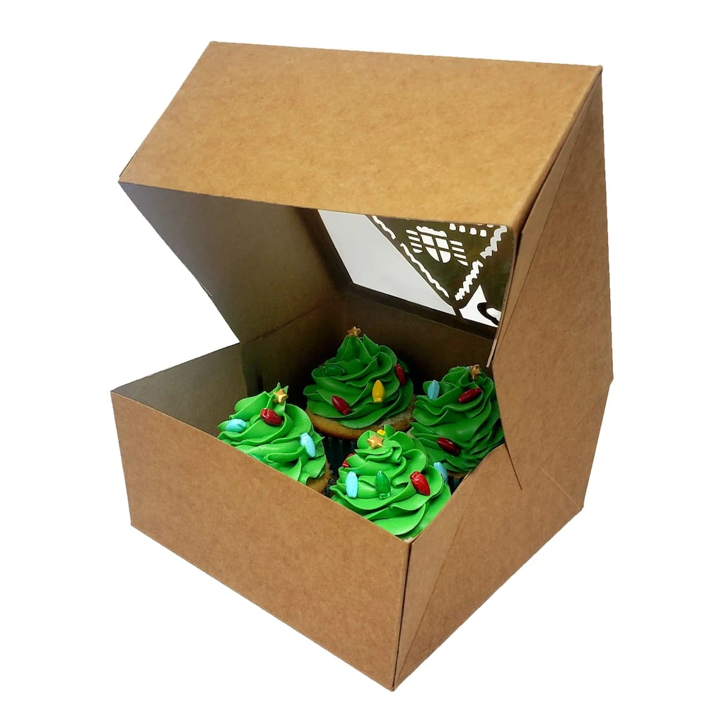 Transport your cupcakes in holiday style using these adorable gingerbread treat boxes! They’re also great for mini cakes and brownies.