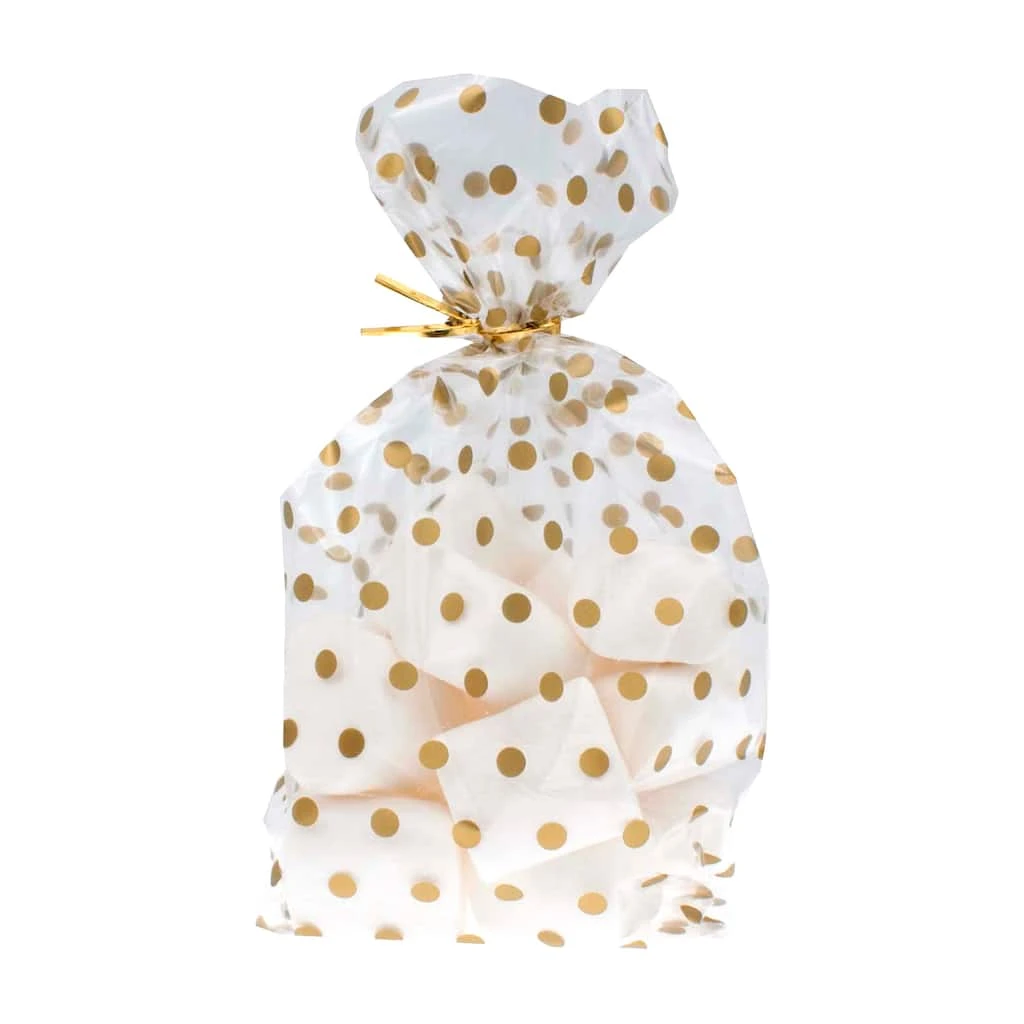 Gift your guests a pretty wrapped bit of tasty goodness using these gold-dotted treat bags with ties from Celebrate It. Perfect for use at parties, bake sales and gatherings with friends and family, fill these bags with candies, baked goods, popcorn mixes and more!
