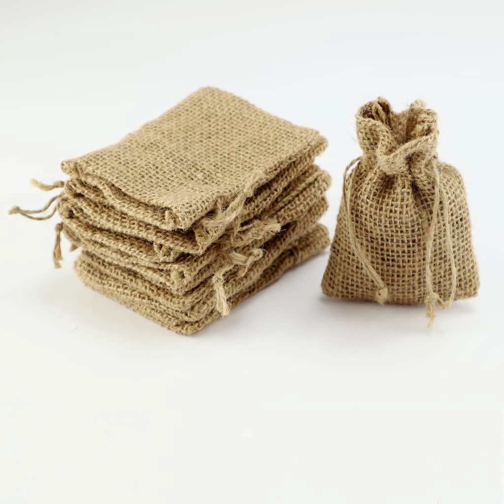 Natural burlap drawstring bags are ideal for use as favor bags, gift bags or even jewelry bags. Use them at your outdoor wedding or next birthday party.